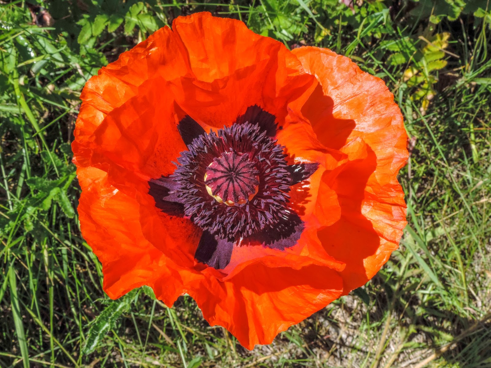 The return from the park was on the same road (only one way in and one way out). They stopped to photo some giant reddish/orangish poppies that were the largest Linda had ever seen. The insides were a very interesting shape and were purple. Linda is going to cut the poppy pod to see if she can extract some kind of opiate.